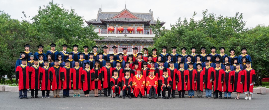 在學位授予儀式的最后,全體領導、師生到大樓前合影留念。